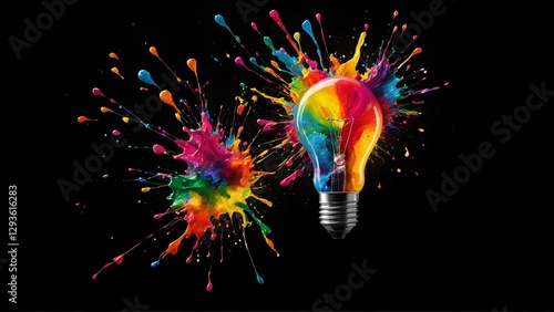 Vibrant Idea: a dynamic composition, an electric light bulb bursting with vibrant colors, symbolizing creative energy, and innovation, Generative Ai