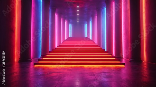 Vibrant illuminated stairs with neon lighting high resolution hd picture