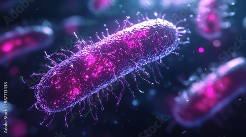 Vibrant illustration of a bacterium showcasing intricate details and glowing colors, perfect for educational and scientific purposes.
