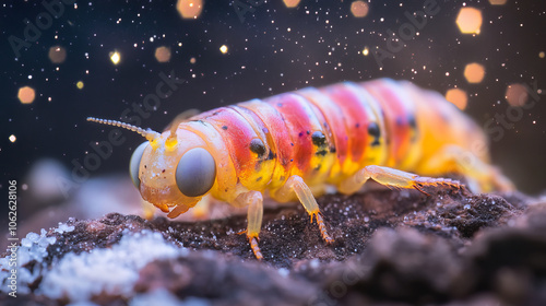 Vibrant Insect Macro: Firefly Larva, Starry Night Background, Colorful Closeup