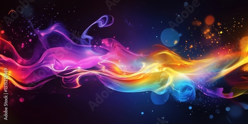 Vibrant iridescent wave with bokeh lights on dark fluid background