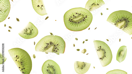 Vibrant Isolated Kiwi Falling on White Background - High-Quality Professional Stock Image