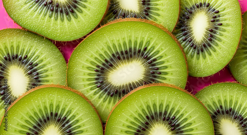 Vibrant kiwi fruit slices create a refreshing and healthy food background, perfect for summer promotions