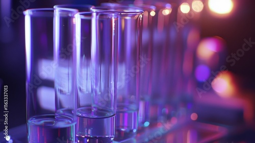 Vibrant Laboratory Setup with Empty Test Tubes and Colorful Backlight Creating an Atmospheric Scene for Scientific and Experimental Imagery