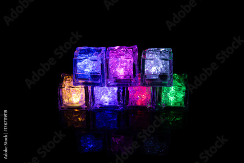 Vibrant LED Ice Cubes on a Dark Reflective Surface