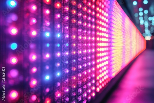 Vibrant LED Light Wall Display with Colorful Patterns and Dynamic Illumination in a Modern Setting
