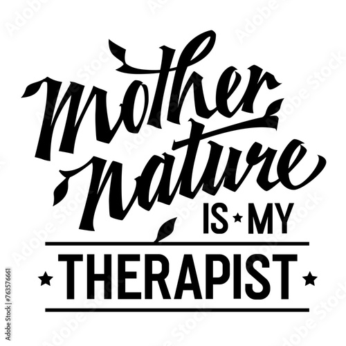 Vibrant lettering design, Mother Nature is my therapist. Typography creative template is ideal for web, prints, fashion purposes. Dynamic script in motivational design element to connect with nature
