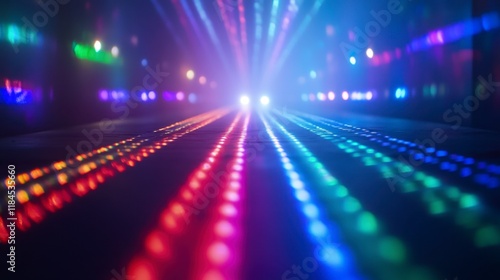 Vibrant light show displaying lofi edm colors indoor venue digital art nighttime close-up view creative concept