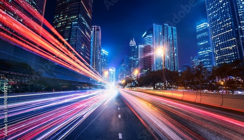 vibrant light trails create dynamic motion in urban night scene