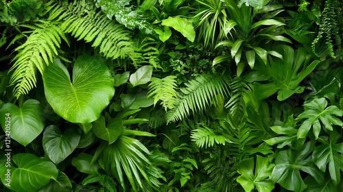 Vibrant Lush Green Jungle Foliage with Diverse Tropical Leaves : Generative AI