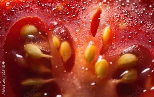 Vibrant macro shot of a fresh organic tomato, highlighting its juicy texture and rich red color. A perfect close-up for food, health and organic lifestyle themes.