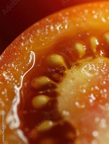 Vibrant macro shot of a fresh organic tomato, highlighting its juicy texture and rich red color. A perfect close-up for food, health and organic lifestyle themes.