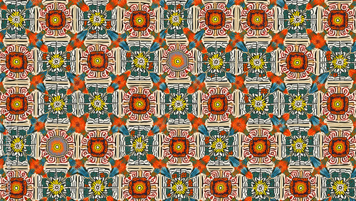 Vibrant Madhubani Floral Seamless Tile Patterns for Cultural Indian Home Decor - Stock Photo Concept