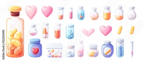 Vibrant Medical Containers and Tools Illustration for Healthcare Professionals and Clinics - Colorful Medical Instruments Concept Design