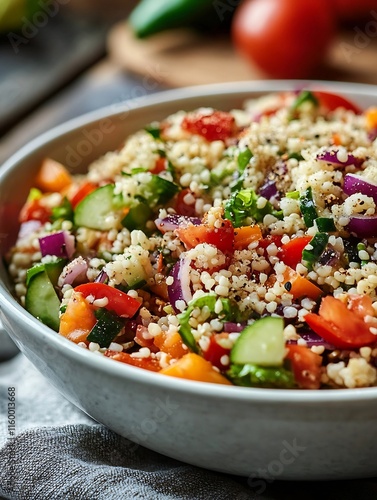 Vibrant Mediterranean Couscous Salad with Fresh Vegetables and Herbs : Generative AI
