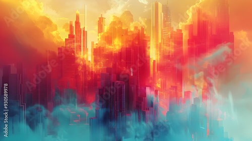Vibrant Melting Cityscape of Flowing Architectural Shapes and Surreal Blended Designs