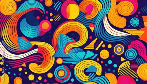 Vibrant MemphisStyle Pop Art Geometric Pattern, Pulsating with Energy and Color, Embracing Textured s Aesthetic, Perfect for Digital Art, Home Decor, or Design Inspiration.