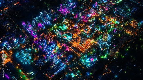 Vibrant Metropolis: A Nighttime Aerial View of a City's Illuminated Skyline