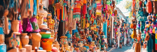 Vibrant Mexican Crafts in Oaxaca Market AI generated illustration