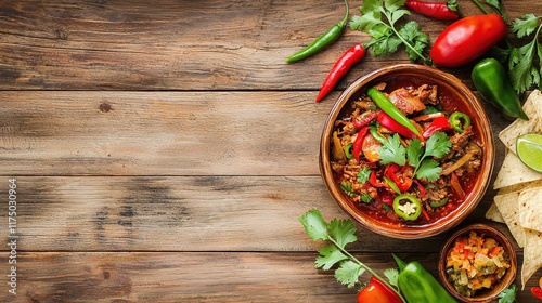 Vibrant Mexican Dish with Fresh Ingredients on Rustic Wooden Table