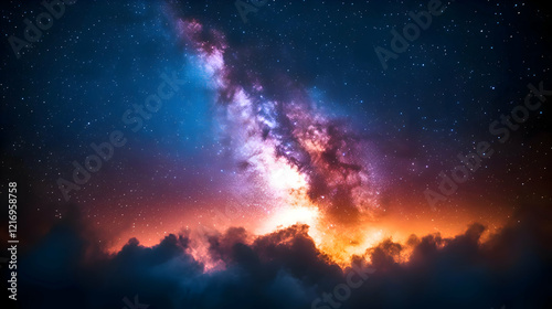 Vibrant Milky Way Galaxy Over Dark Clouds at Night