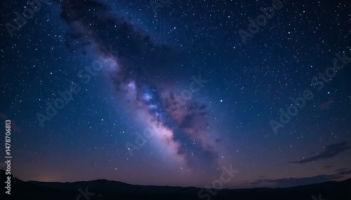 Vibrant milky way galaxy stretches across the dark night sky with celestial stars afar above earth.