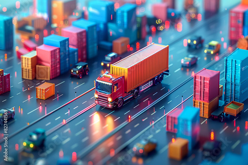 Vibrant Miniature City Logistics Concept with Trucks and Cars