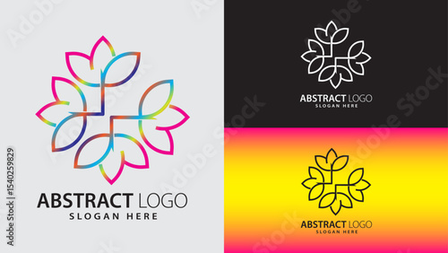Vibrant Modern Colorful Gradient Floral Symmetric Geometric Plant Based Abstract Logo Icon