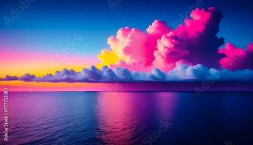 Vibrant multicolored clouds in shades of pink , yellow, blue, and a dark blue sky Background