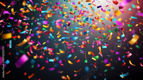 Vibrant multicolored confetti raining down in a joyful celebration, creating a festive and lively atmosphere.