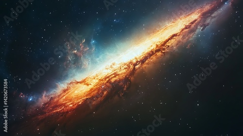 Vibrant Nebula in Deep Space, A vibrant nebula with blue and orange hues surrounded by stars in deep space