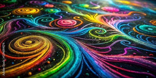 Vibrant Neon Chalk Swirls on Dark Blackboard - Abstract Texture Stock Photo