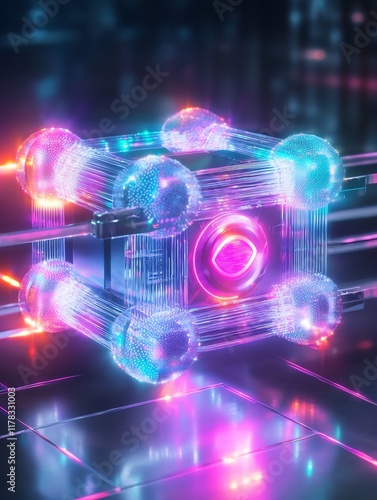 Vibrant Neon Cube: Futuristic 3D Render, Close-Up View. AI Generated