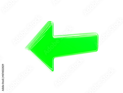 Vibrant neon green 3D arrow pointing left with a glossy finish and glow