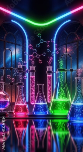 Vibrant Neon Laboratory Experiments with Molecular Structures and Galaxy Background