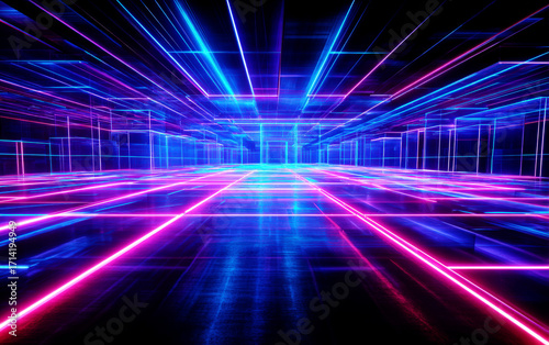 Vibrant Neon Light Trails Creating Futuristic Abstract Scene