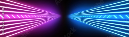 Vibrant Neon Lines Create a Dynamic Futuristic Background with Pink and Blue Light Effects in Dark Space
