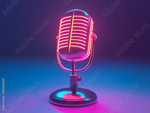 Vibrant Neon Microphone Icon Symbolizing Podcasts and Media