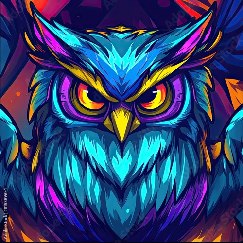 Vibrant Neon Owl Illustration Digital Art Graphic Design