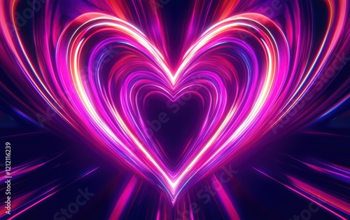 Vibrant neon pink and purple abstract light trails forming a heart-inspired motion