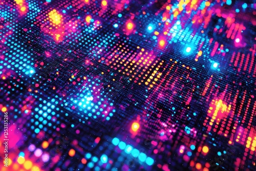 Vibrant neon pixelated glitch pattern creating a modern digital aesthetic in abstract art