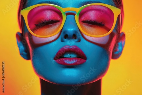 Vibrant Neon Portrait: Bold Sunglasses Fashion with Colorful Pop Art Aesthetics