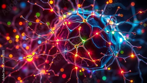 Vibrant Neuron Network Illuminated With Colorful Lights