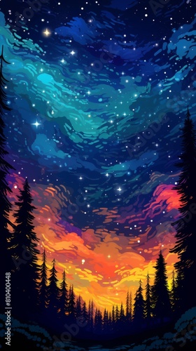 Vibrant night sky landscape with stars and aurora borealis