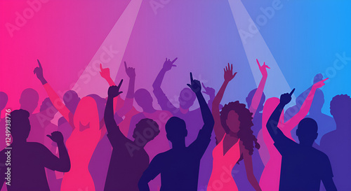 Vibrant Nightlife Celebration: Silhouetted Party Atmosphere