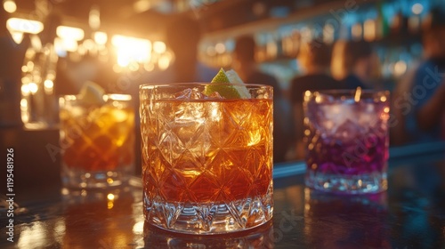 Vibrant Nightlife Crystal Cocktails and Golden Light at Upscale Bar