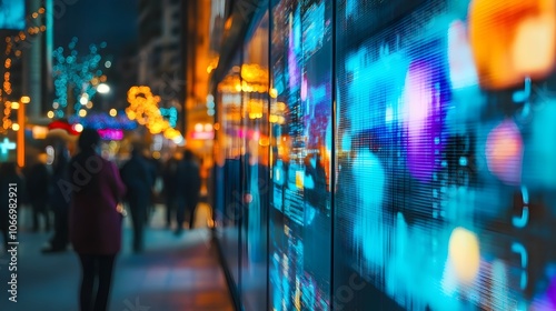 Vibrant Nightlife in a Futuristic Urban Metropolis with Illuminated Digital Screens