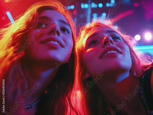 Vibrant Nightlife: Two Female Friends Sharing a Moment
