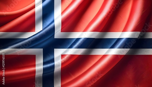 Vibrant Norway flag waving with luxurious satin texture - Patriotic and cultural symbol