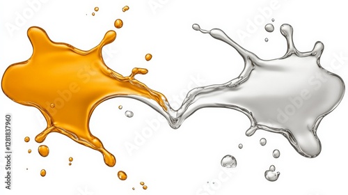 Vibrant Orange and Silver Liquid Splashes on White Background